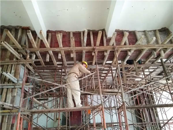 增大板截面加固法是于板面或者板底增做不小于40mm厚的鋼筋混凝土后澆層,為了方便施工多采用板面澆筑以形成剛性樓蓋和屋蓋。如若必須采用板底澆筑疊合層,需對(duì)板底進(jìn)行鑿毛處理采用噴射法進(jìn)行施工。加固用的鋼筋,應(yīng)采用熱軋鋼筋,板的受力鋼筋直徑不少于8mm。