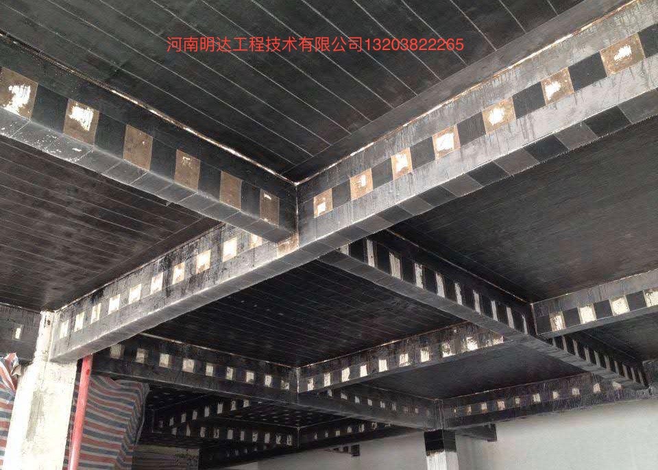 梁粘貼纖維復(fù)合材加固技術(shù)是利用碳素纖維布和專用結(jié)構(gòu)膠對(duì)原粱進(jìn)行加固處理。碳素纖維布加固技術(shù)現(xiàn)在也越來(lái)越廣泛地被應(yīng)用在梁結(jié)構(gòu)加固中。其具有眾多優(yōu)點(diǎn),如重量輕,密度只有普通鋼材的1/4;耐久性好,可阻抗化學(xué)腐蝕和惡劣環(huán)境、氣候變化的破壞;施工方便快捷、省力節(jié)時(shí)、施工質(zhì)量易于保證;加固后對(duì)原結(jié)構(gòu)外觀和原有凈空無(wú)顯著影響,維護(hù)費(fèi)用低。